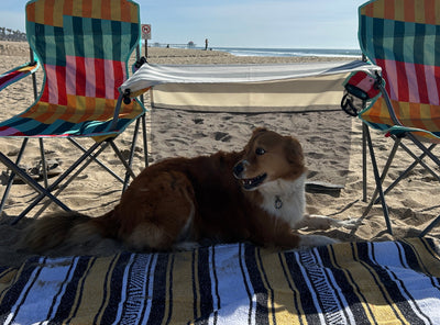 We've designed the K9Canopy™ so it can be fixed between any 2 objects - like beach chairs, carts or trolleys - with simple bungee cords. The mesh back provides airflow and visibility for your pet, and there is a sand pocket and tent pegs to secure the back if needed